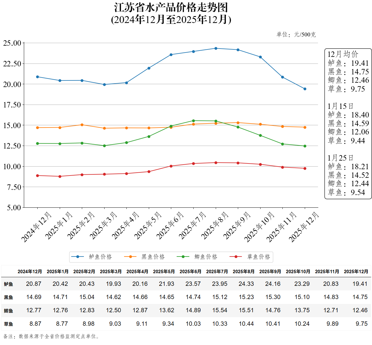江苏省水产品价格走势图(2026年1月25日)