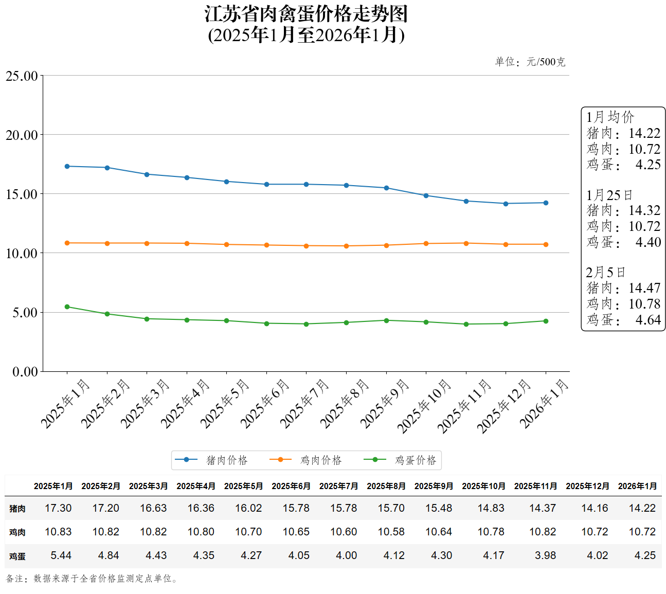 江苏省肉禽蛋价格走势图(2026年2月5日)
