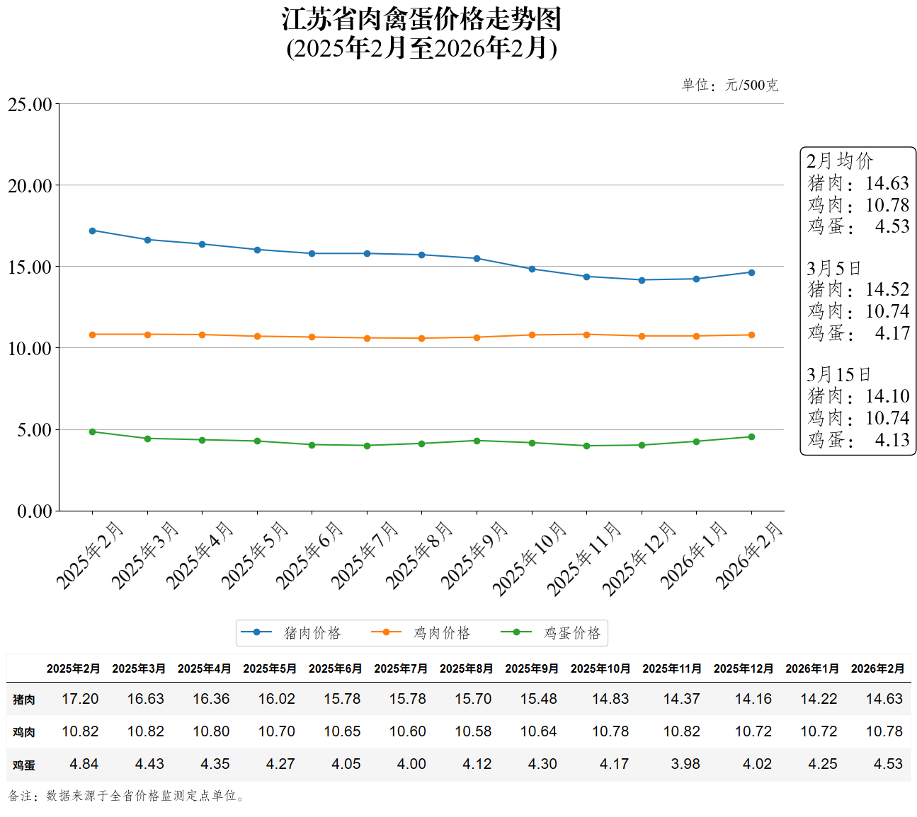江苏省肉禽蛋价格走势图(2026年3月15日)