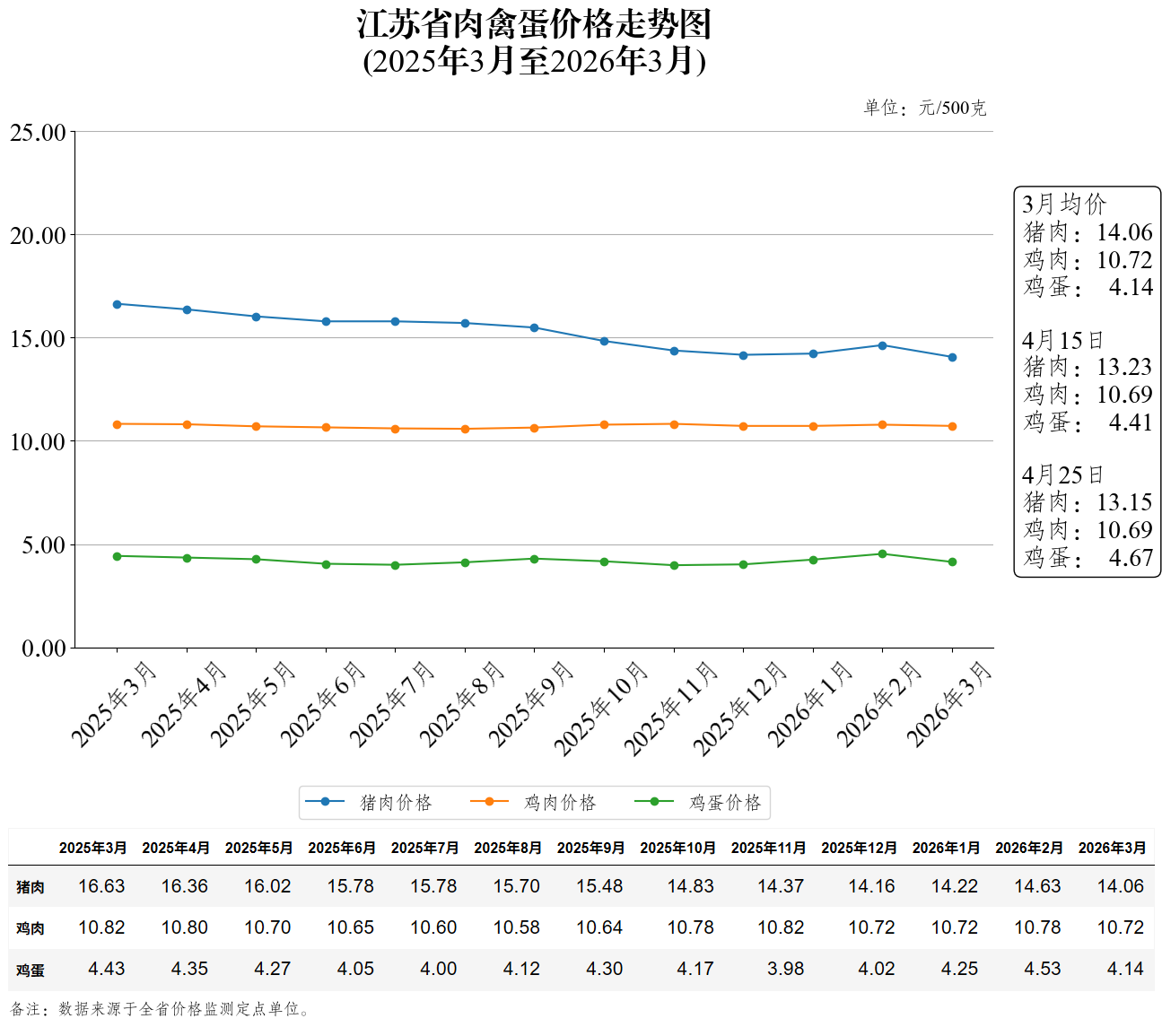 江苏省肉禽蛋价格走势图(2026年4月25日)