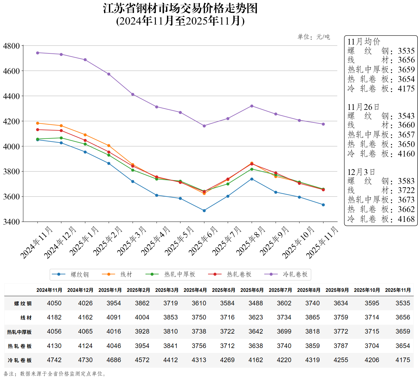 - 江苏省钢材市场交易价格表(2025年12月3日)2025-12-03