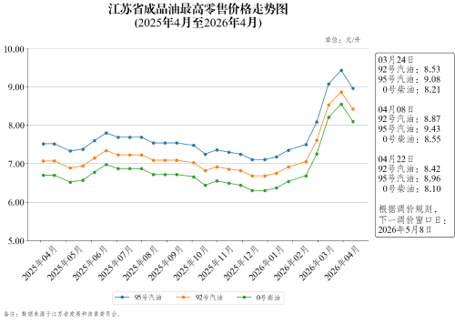 - 江苏省成品油最高零售价格表(2026年4月22日...2026-04-21