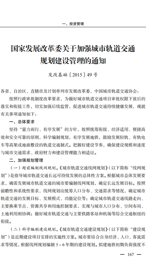国家发展改革委关于加强城市轨道交通规划建设管理的通知