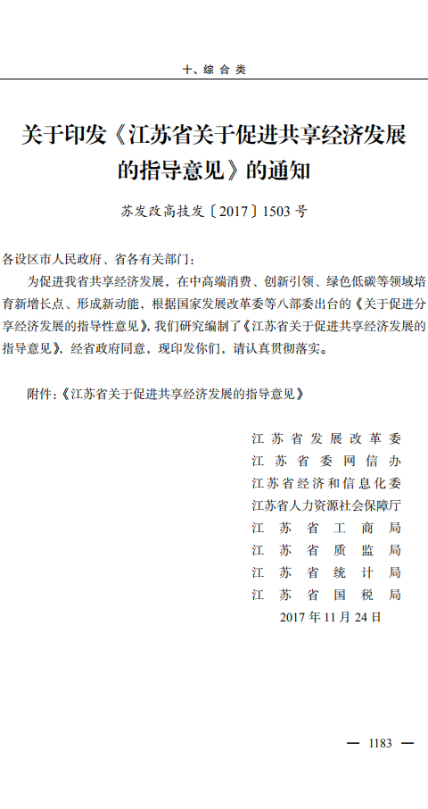 关于印发《江苏省关于促进共享经济发展的指导意见》的通知