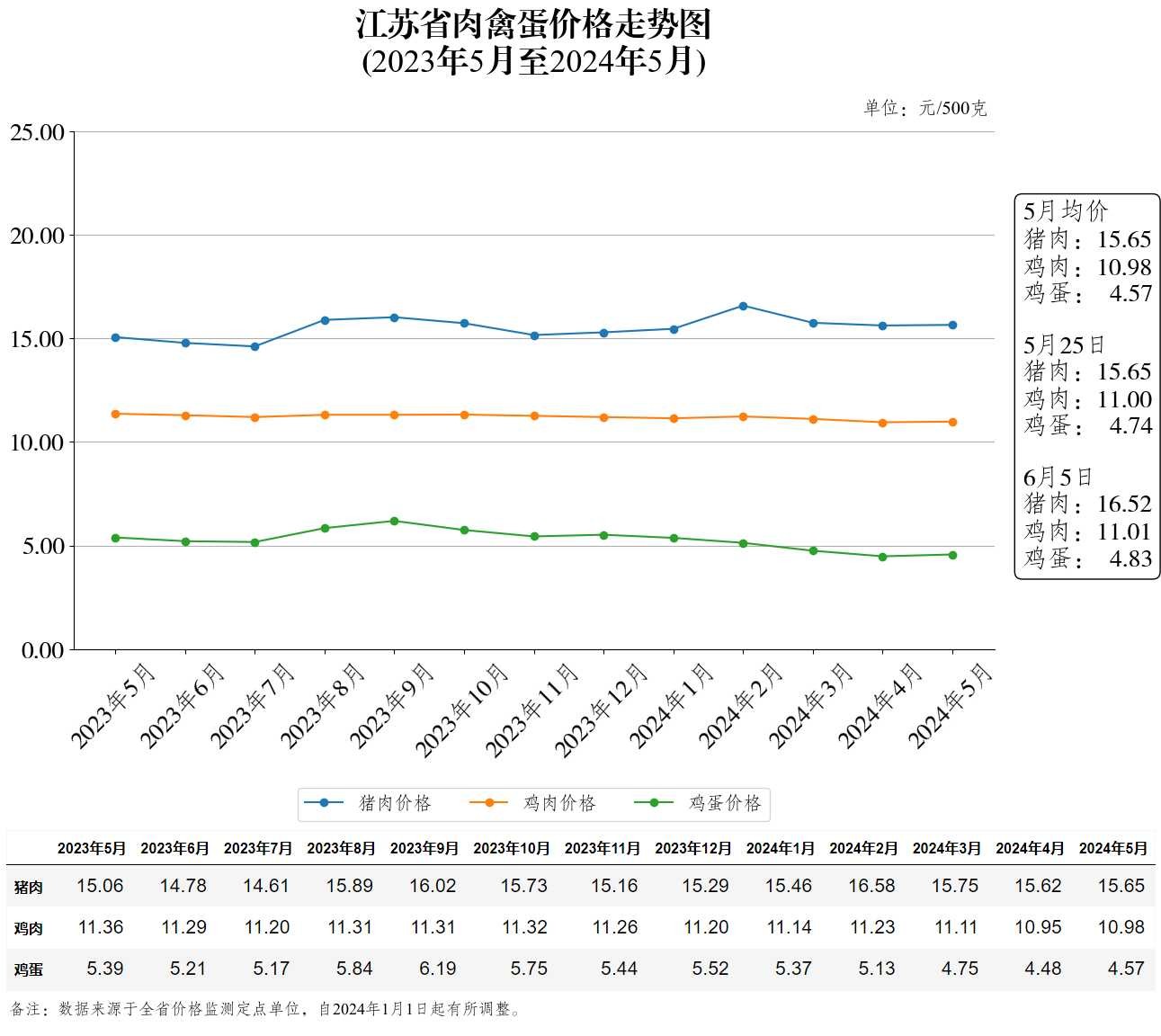 江苏省肉禽蛋价格走势图(2024年6月5日)