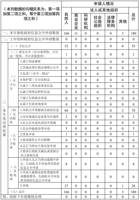 三、收到和处理政府信息公开申请情况