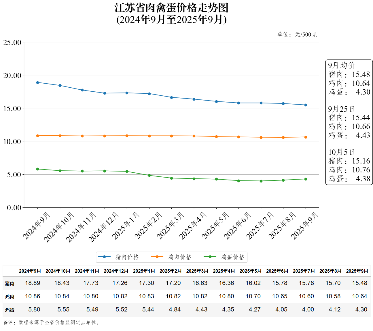 - 江苏省米面肉禽蛋鱼零售价格表(2025年9月25...2025-09-25